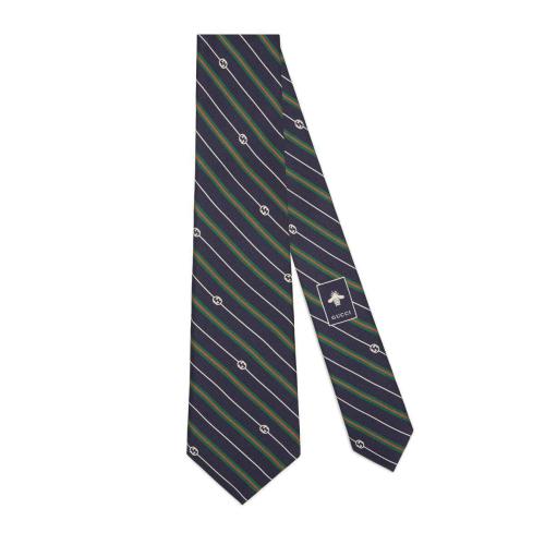 GUCCI古驰 22年秋冬 男士 饰互扣式双G印花真丝领带 714696 4EAAX 4066