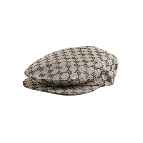 GUCCI/古驰 22年春夏新款 男士米色/蓝色经典老花帆布平顶帽6968564HAOB4068