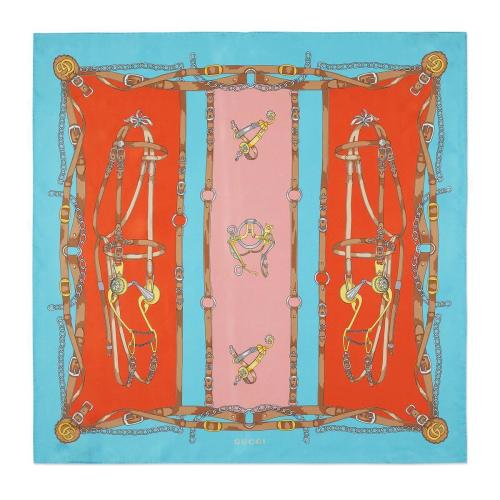 GUCCI古驰 22年秋冬 女士 饰双G马具印花围巾 712443 3G001 4972