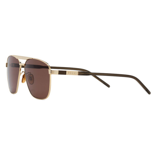 GUCCI/古驰 22年春夏新款 男士纯棕色镜片光泽感金色调金属镜框领航员太阳眼镜墨镜691380I33308023