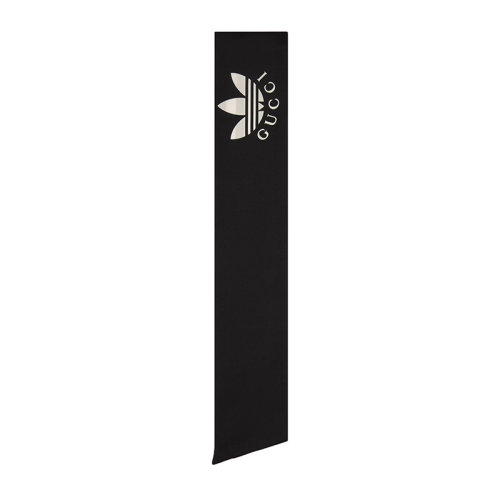 GUCCI/古驰 22年秋冬新款 adidas联名系列 女士黑色/象牙色桑蚕丝三条纹印花领结丝巾7035683G0011078