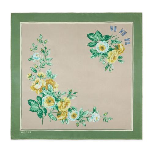 GUCCI古驰 22年秋冬 男士 Gucci HA HA HA特别系列花朵印花真丝围巾 724349 4G001 9768