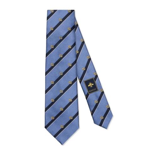 GUCCI古驰 22年秋冬 男士 互扣式双G条纹真丝领带 660058 4E002 4568