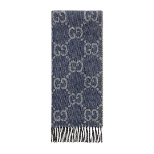 GUCCI古驰 22年秋冬 女士 GG提花流苏针织围巾 676610 3G200 4165