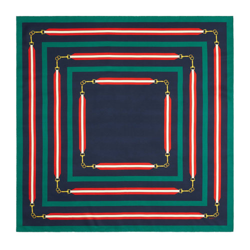 GUCCI/古驰 女士海军蓝色真丝马衔扣图案围巾?6267813G0014100