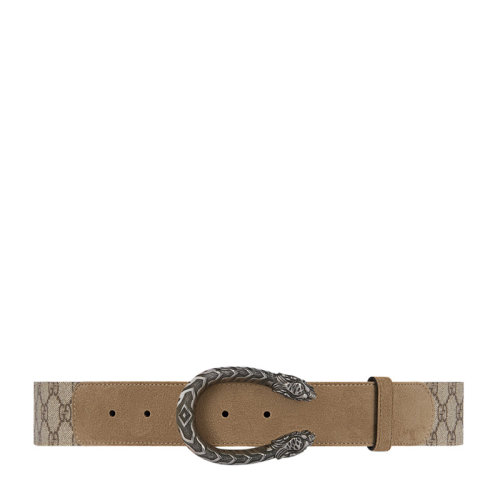 GUCCI/古驰 Dionysus系列女士米色/乌木色帆布配麂皮经典双G字母徽标印花蛇扣时尚休闲皮带腰带 505337-KHNRN-8642