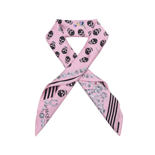 Alexander McQueen/亚历山大麦昆 女士骷髅头印花简约复古真丝围巾丝巾 5577174Q060