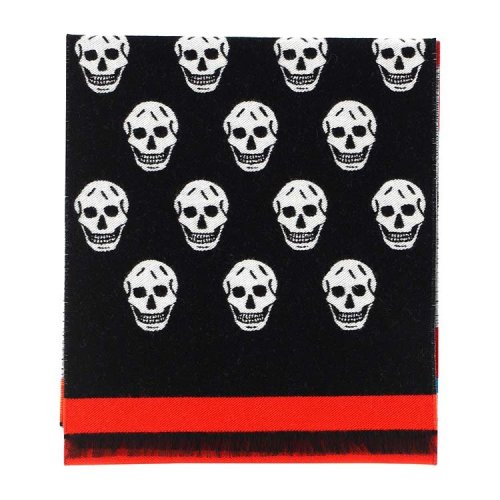 Alexander McQueen/亚历山大麦昆 女士黑白拼色个性骷髅头印花围巾丝巾 557717-3943Q 多色可选