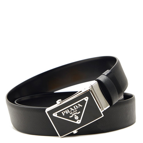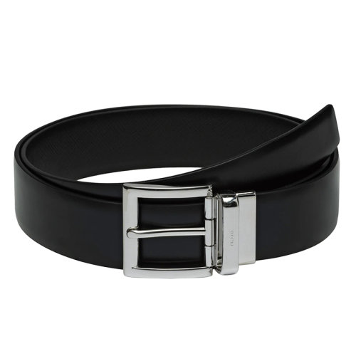 PRADA/普拉达 男士黑色摩洛哥皮革和小牛皮抛光钢扣双面腰带33毫米2CC004_2AJ9_F0002