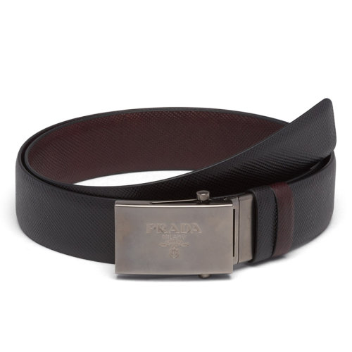 PRADA/普拉达 男士黑色/咖啡棕色摩洛哥皮革金属搭扣双面腰带35毫米2CM016_2FAD_F0XCR