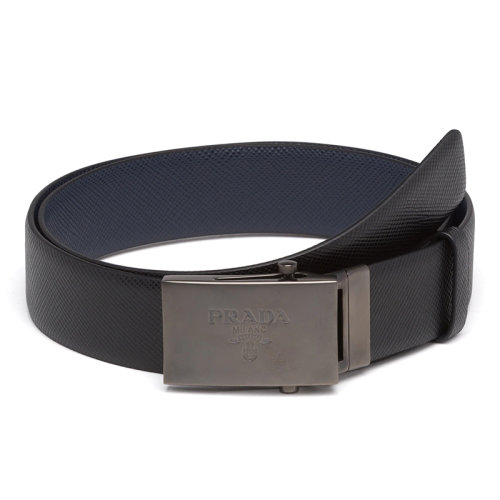 PRADA/普拉达 男士黑色和海军蓝摩洛哥皮革和金属搭扣双面腰带35毫米2CM016_2FAD_F0RD7