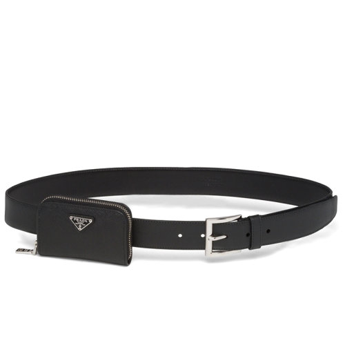 PRADA/普拉达 男士黑色摩洛哥皮革和三角形徽标的尼龙小包金属扣腰带30毫米2CM212_F0L_F0002
