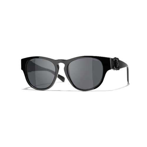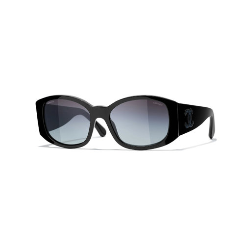 Chanel/香奈儿 22年春夏新款 女士灰色镜片黑色醋酯纤维镜框椭圆形太阳眼镜墨镜A71427X08101S0116