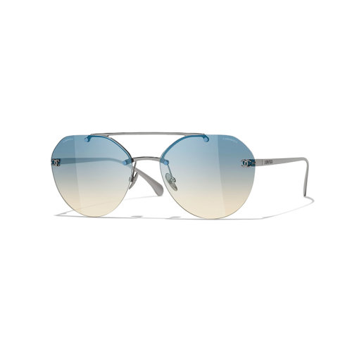 Chanel/香奈儿 22年春夏新款 女士渐变浅蓝色镜片深银色钛合金镜框飞行员太阳眼镜墨镜A71450X09950L0879