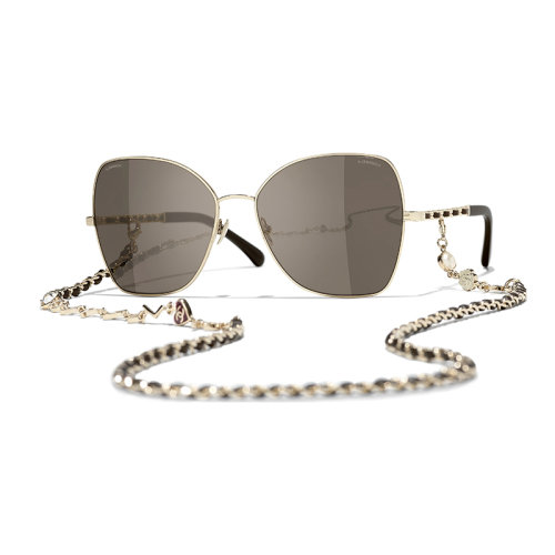 Chanel/香奈儿 22年春夏新款 女士棕色镜片金色/棕色金属与小牛皮镜框饰链条蝴蝶形太阳眼镜墨镜A71446X27388L3953