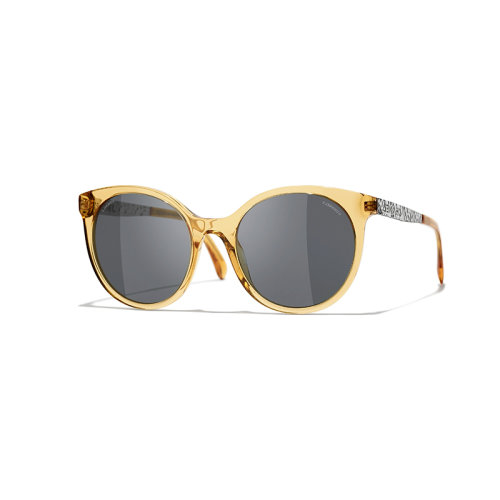 Chanel/香奈儿 22年春夏新款 Pantos系列 女士灰色镜片黄色醋酯纤维与金属镜框太阳眼镜墨镜A71396X06081S8814