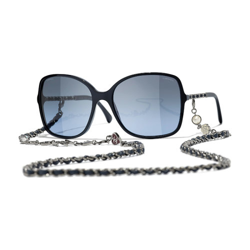 Chanel/香奈儿 22年春夏新款 女士渐变蓝色镜片蓝色/深银色醋酯纤维镜框饰金属和小牛皮链条方框太阳眼镜墨镜A40911X06074S6212