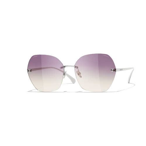 Chanel/香奈儿 22年春夏新款 女士渐变紫色镜片银色钛合金镜框方框太阳眼镜墨镜A71449X09950L2428