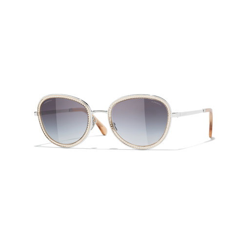 Chanel/香奈儿 22年春夏新款 女士渐变灰色镜片银色金属镜框饰水钻飞行员太阳眼镜墨镜A71461X02570L4756