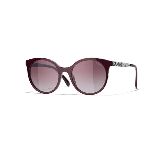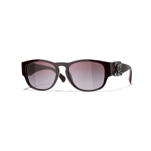 Chanel/香奈儿 22年春夏新款 女士渐变紫色镜片酒红色/深银色醋酯纤维镜框方形太阳眼镜墨镜A71436X08101S4611