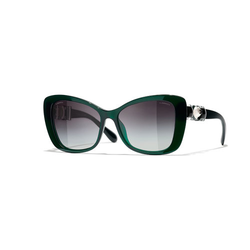 Chanel/香奈儿 22年春夏新款 女士深绿色镜片醋酯纤维镜框饰琉璃珍珠蝴蝶形太阳眼镜墨镜A71402X08224S7216