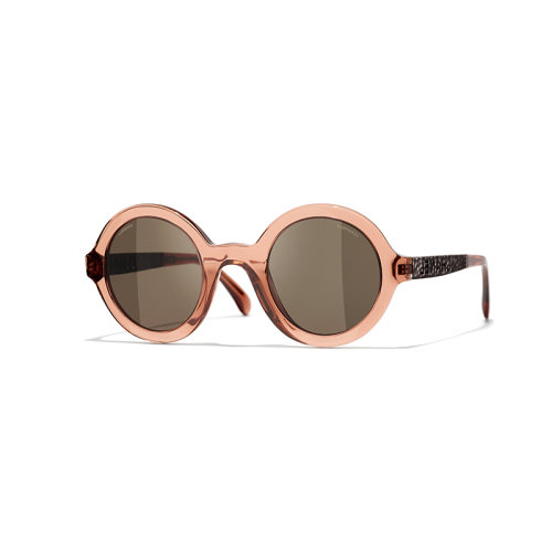 Chanel/香奈儿 22年春夏新款 女士灰色镜片透明棕色醋酯纤维与金属镜框圆形太阳眼镜墨镜A71397X06081S1365