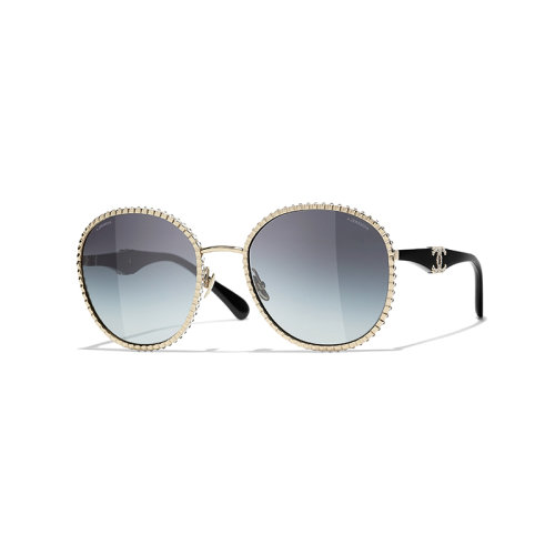 Chanel/香奈儿 22年春夏新款 女士渐变灰色镜片金色金属镜框饰水钻圆框太阳眼镜墨镜A71430X02570L9516