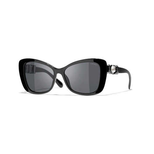 Chanel/香奈儿 22年春夏新款 女士灰色镜片黑色醋酯纤维镜框饰琉璃珍珠蝴蝶形太阳眼镜墨镜A71402X08224S0114