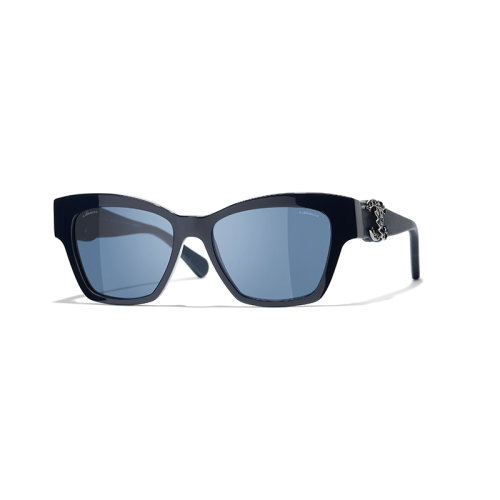 Chanel/香奈儿 22年春夏新款 女士蓝色镜片蓝色/银色醋酯纤维镜框猫眼形太阳眼镜墨镜A71438X08101S4380