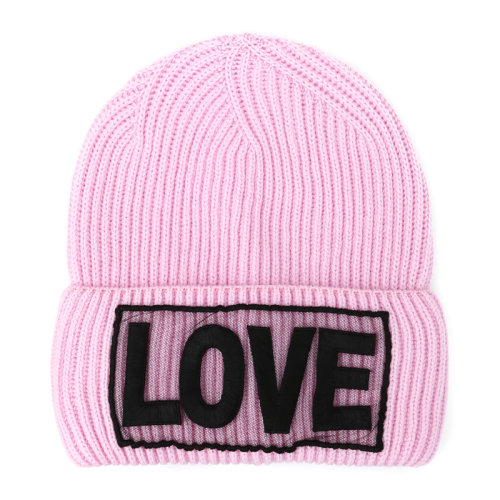 VERSACE/范思哲 女士粉色羊毛LOVE字母贴饰毛线帽针织帽女帽 ICAP007-IK0118-I41R