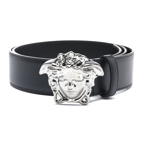 VERSACE/范思哲 男士黑色皮革时尚经典金银色美杜莎头像板扣式皮带腰带 DCU8443-DV3TN-D41VP