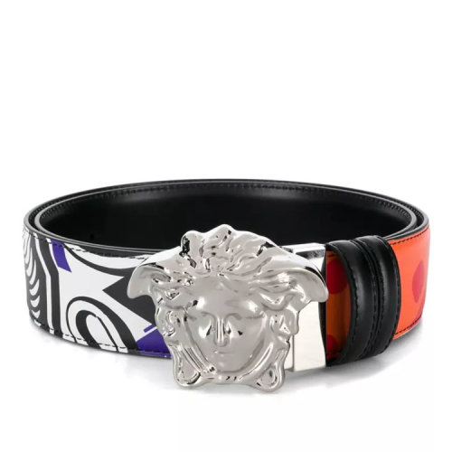VERSACE/范思哲 男士混色皮革印花时尚经典银色美杜莎头像板扣式皮带腰带 DCU6705-DVST2-DM41P