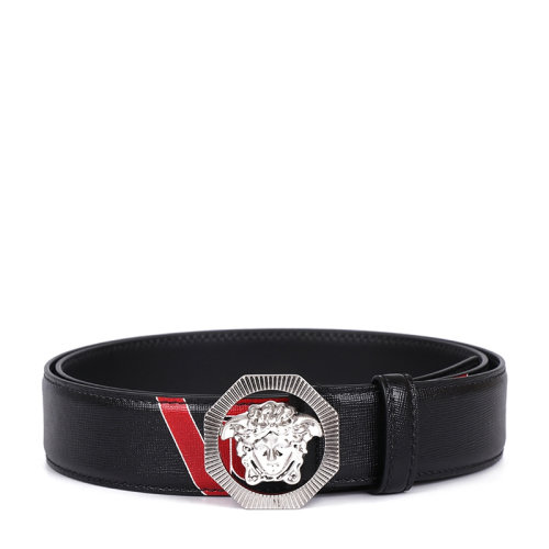 VERSACE 范思哲 男士 黑色皮革八角形美杜莎头像红色字母LOGO板扣皮带腰带 男士腰带 DCU6715-DSAVV-DMXPS