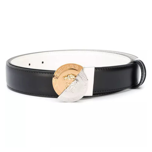VERSACE/范思哲 男士黑/白色双面穿皮革时尚经典错位美杜莎头像搭扣式皮带腰带 DCU8330-DVTPH-DBNVP
