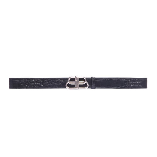 Balenciaga/巴黎世家新款 BB系列 男士黑色鳄鱼纹压花皮革金属扣腰带28毫米5703701ROBY1000