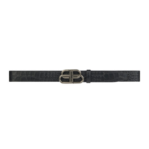 Balenciaga/巴黎世家新款 BB系列 男士黑色鳄鱼纹压花皮革金属扣腰带28毫米5703701ROBY1000