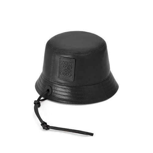 LOEWE/罗意威 22年春夏新款 女士黑色纳帕牛皮革颔带水桶帽渔夫帽K000HB1X01-1100