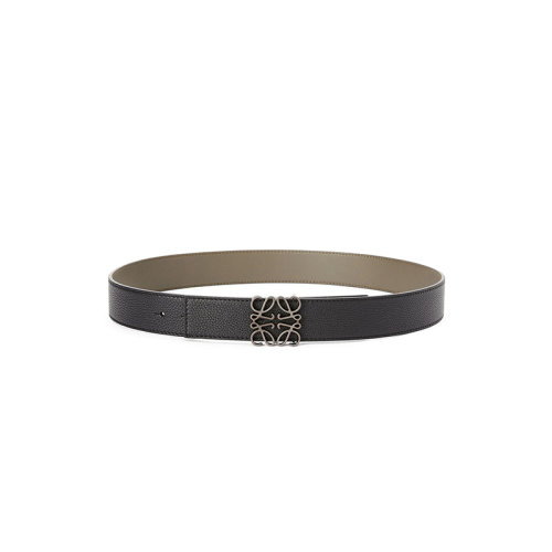 LOEWE/罗意威 22年春夏新款 男士黑色/卡其绿色柔软粒面牛皮革和光滑牛皮革灰色扣双面腰带35毫米E619Z20X04-2739