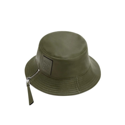 LOEWE/罗意威 22年春夏新款 女士卡其绿色纳帕牛皮革拉链渔夫帽112.10.010-4160