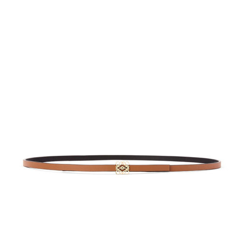 LOEWE/罗意威 22年早春新款 Anagram系列 女士棕褐色/黑色光滑牛皮革金扣极细腰带8毫米E619244X19-2544