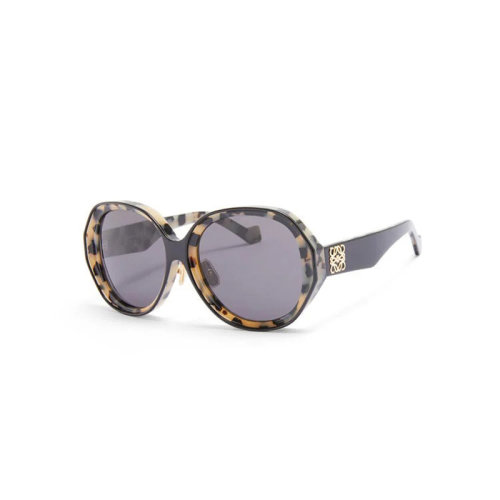 LOEWE/罗意威 22年春夏新款 女士烟熏黑色镜片哈瓦那白色玳瑁效果醋酸纤维镜框椭圆太阳镜墨镜G832270X05-1684
