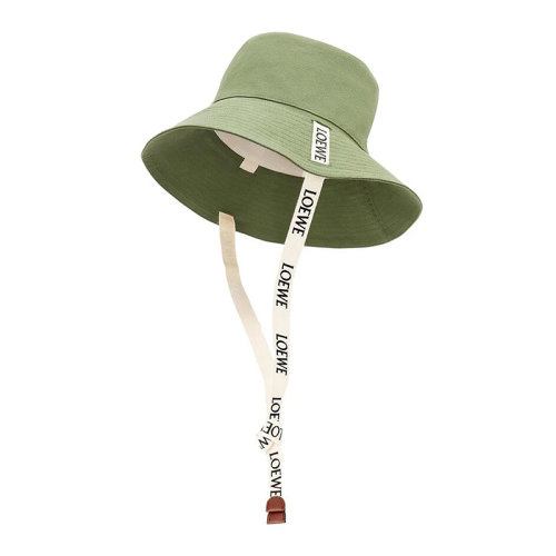 LOEWE/罗意威 22年春夏新款 女士绿色帆布和牛皮革Logo印花系带渔夫帽K820HF1X24-4100