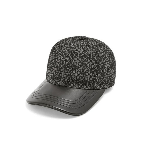 LOEWE/罗意威 22年春夏新款 男士炭灰色/黑色提花布和牛皮革老花图案棒球帽鸭舌帽K820358X01-1268