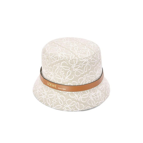 LOEWE/罗意威 22年春夏新款 女士浅褐色/软白色提花布和牛皮革老花图案水桶帽渔夫帽K820HB1X05-2614