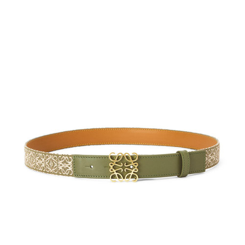 LOEWE/罗意威 22年早春新款 Anagram系列 女士牛油果绿色提花布拼牛皮革老花印花金扣腰带28毫米E619Z26X01-3966