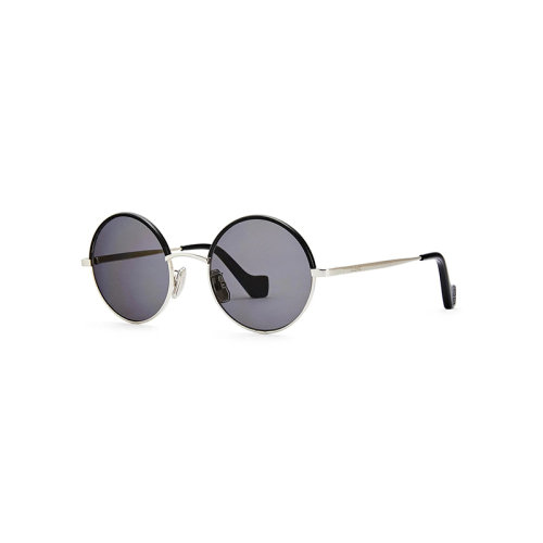 LOEWE/罗意威 22年春夏新款 女士烟熏色镜片钯金色金属和牛皮镜框圆形太阳镜墨镜G737270X01-1893
