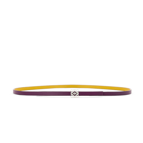 LOEWE/罗意威 22年早春新款 Anagram系列 女士深紫色/赭石色光滑牛皮革银扣极细腰带8毫米E619244X19-7054