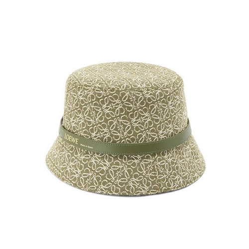 LOEWE/罗意威 22年春夏新款 女士绿色/牛油果绿色提花布和牛皮革老花图案水桶帽渔夫帽K820HB1X07-4364