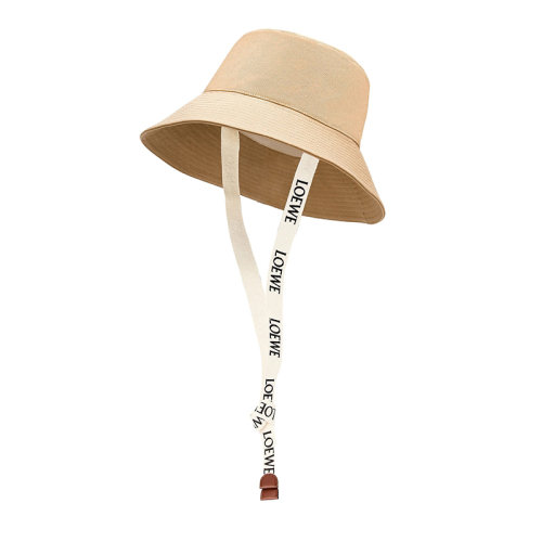 LOEWE/罗意威 22年春夏新款 女士沙色帆布和牛皮革Logo印花绑带渔夫帽K820HF1X24-2150