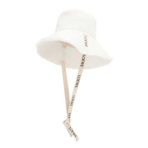 LOEWE/罗意威 22年春夏新款 女士绵白色单宁布和牛皮革Logo印花绑带毛边渔夫帽K820HF1X25-1950